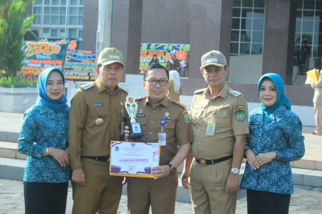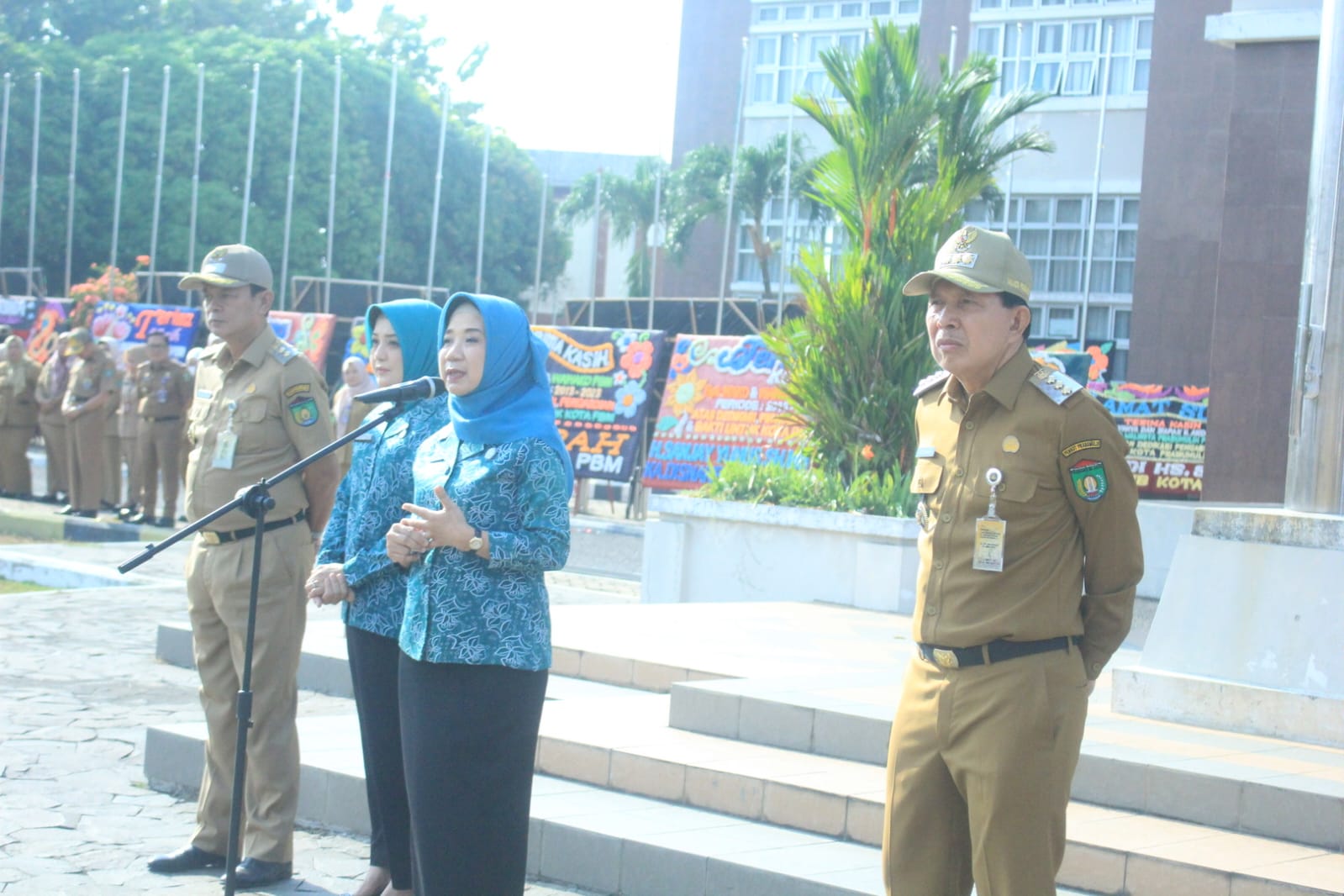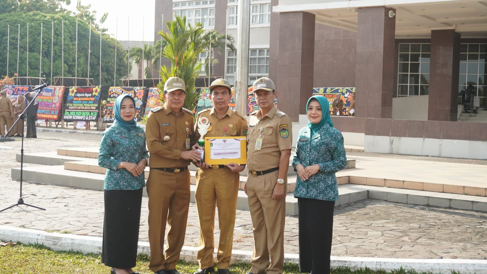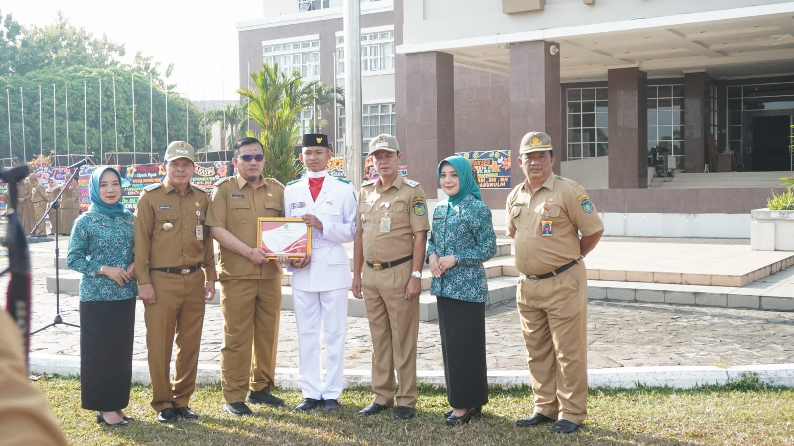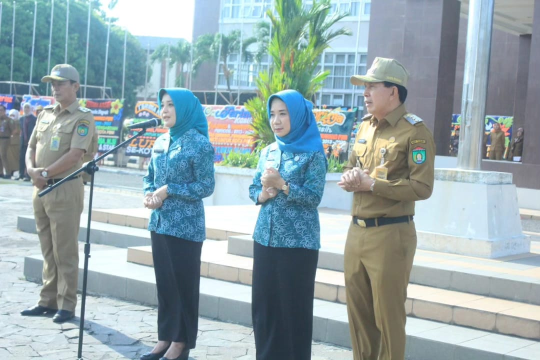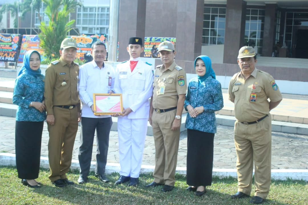 Walikota Prabumulih Ir. H. Ridho Yahya, MM Didampingi Wakil Walikota Prabumulih H. Andriansyah Fikri, SH dan Ketua TP PKK Kota Prabumulih Ir. Hj. Ngesti Rahayu Ridho Wakil Ketua TP PKK Kota Prabumulih Hj. Reni Indayani Fikri, SKM. M.Si Beserta Asisten I II III., Kepala Badan, Kepala Bagian Melaksanakan Apel Mingguan Sekaligus Penyerahan Piagam Penghargaan Gerakan Nasional Pembagian 10 Juta Bendera Merah Putih dari Kementerian Dalam Negeri Kepada Pemerintah Kota Prabumulih dan Pembagian Piagam Anggota Paskibraka Tahun 2023 Kota Prabumulih Serta Penyerahan Piagam dan Piala Pemenang Stand Pameran Prabumulih Expo HUT RI Ke - 78 Tahun 2023.