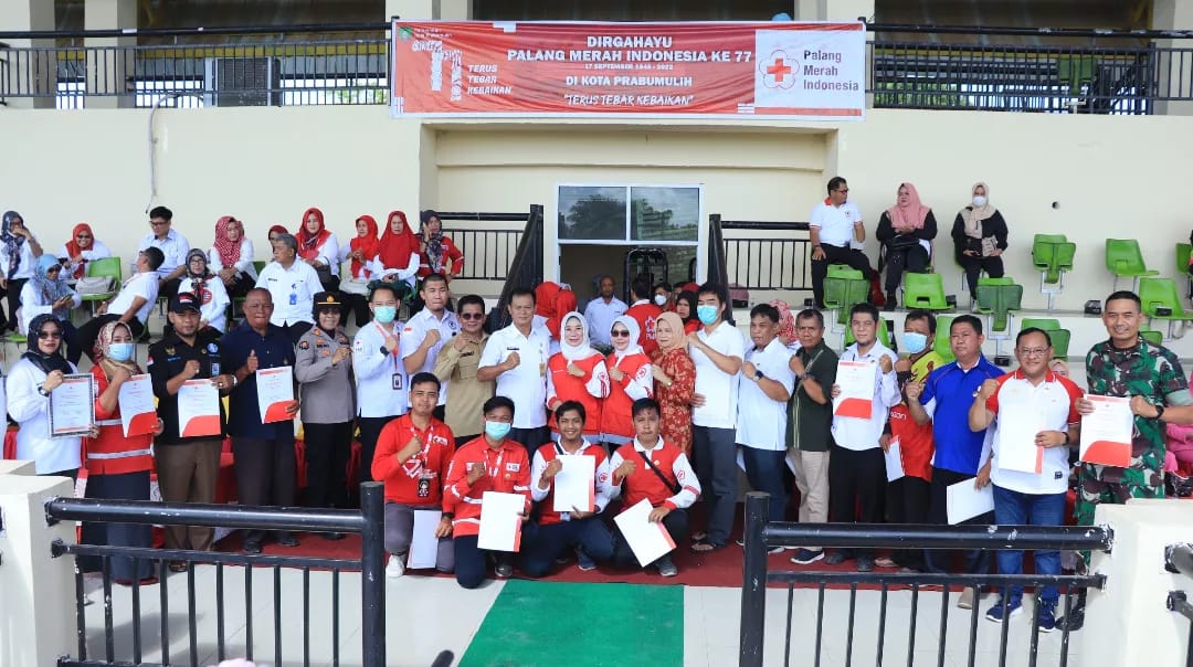 PRABUMULIH – PMI Prabumulih mengelar HUT PMI 77 bertajuk “Tebar Kebaikan Bagi Seluruh Masyarakat Prabumulih” dipusatkan di Stadion Talang Djimar, Rabu, 9 Nopember 2022.