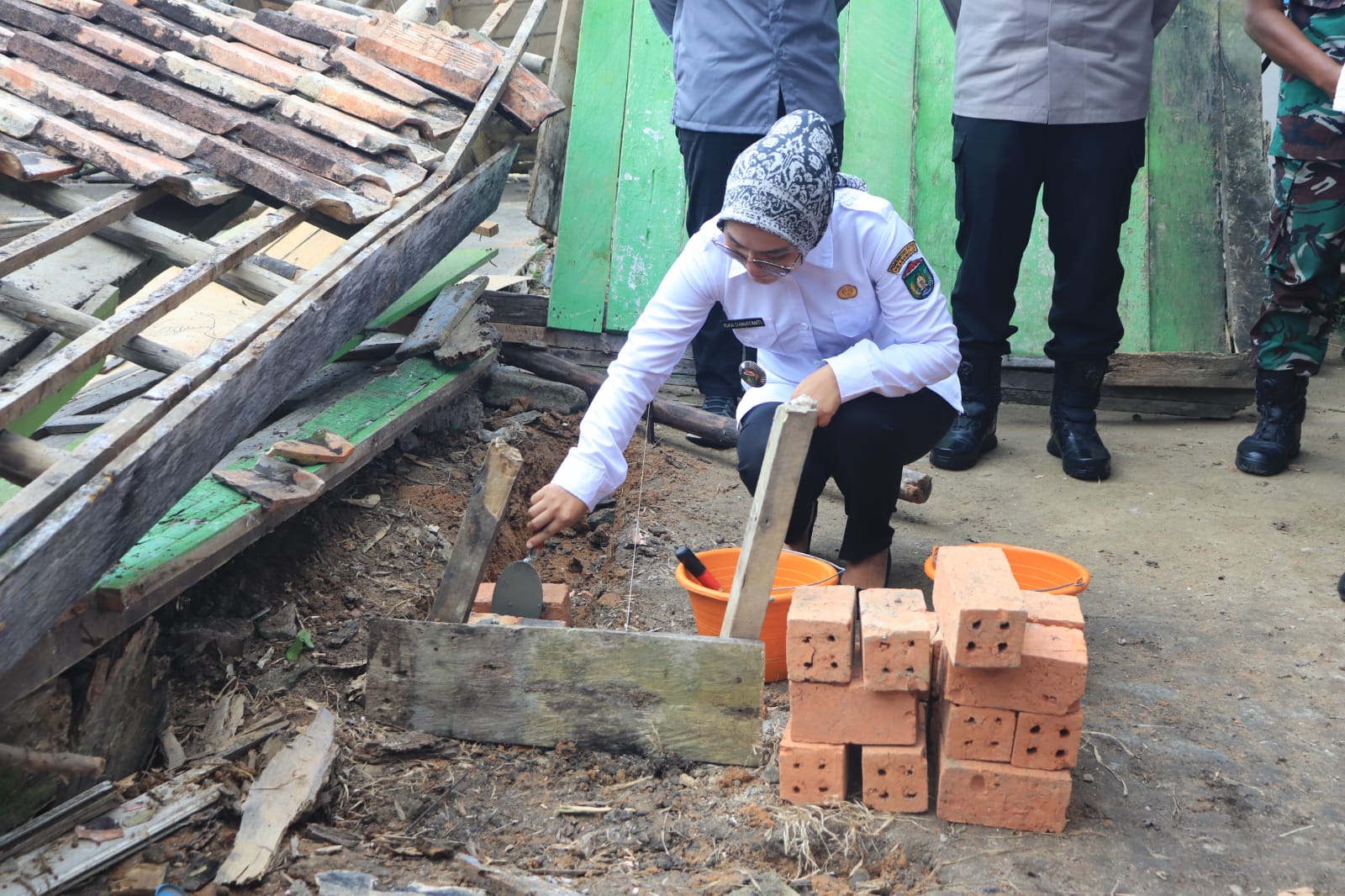 Kedatangan orang nomor satu di Kota Prabumulih itu juga sekaligus untuk menyaksikan pembongkaran rumah Teguh Wiyono yang sudah tidak layak huni serta melakukan peletakan batu pembangunan pertama.