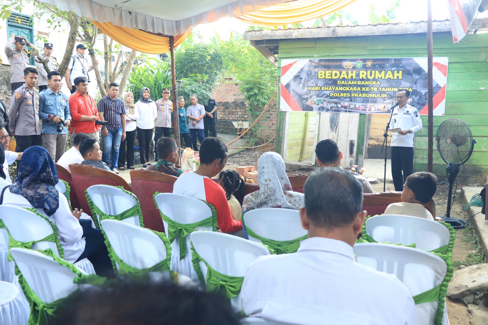 PRABUMULIH - Penjabat Walikota Prabumulih H. Elman, ST., MM menyambangi rumah keluarga Teguh Wiyono yang mendapat program Bedah Rumah dari Polres Prabumulih dalam rangka Hari Bhayangkara ke 78 tahun 2024 di Jalan Angkatan 45 Kelurahan Gunung Ibul Barat.
