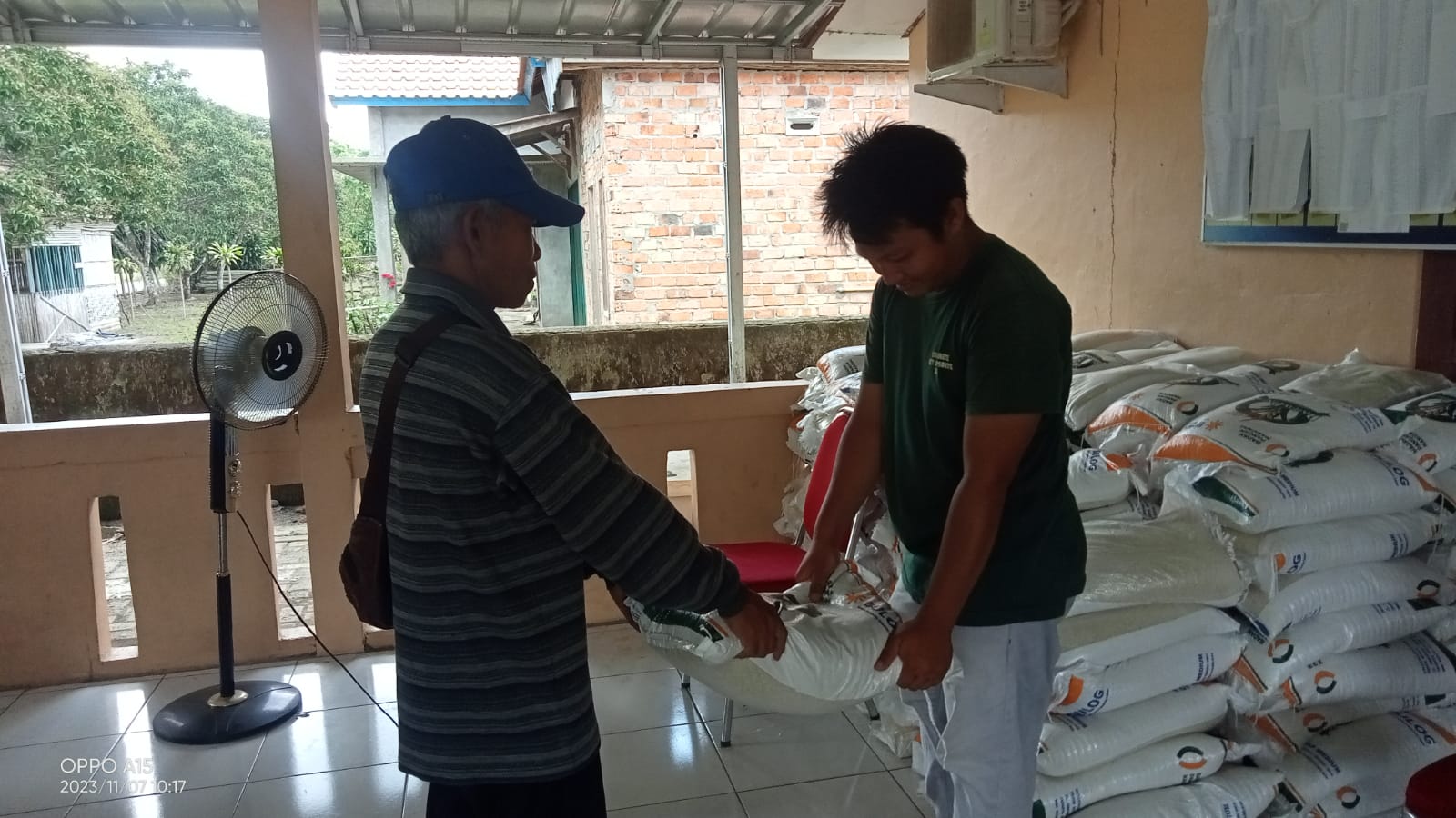 Prabumulih, 07 November 2023 kegiatan penyerahan bantuan pangan dari pemerintah untuk masyarakat Desa Muara Sungai Kecamatan Cambai Kota Prabumulih.