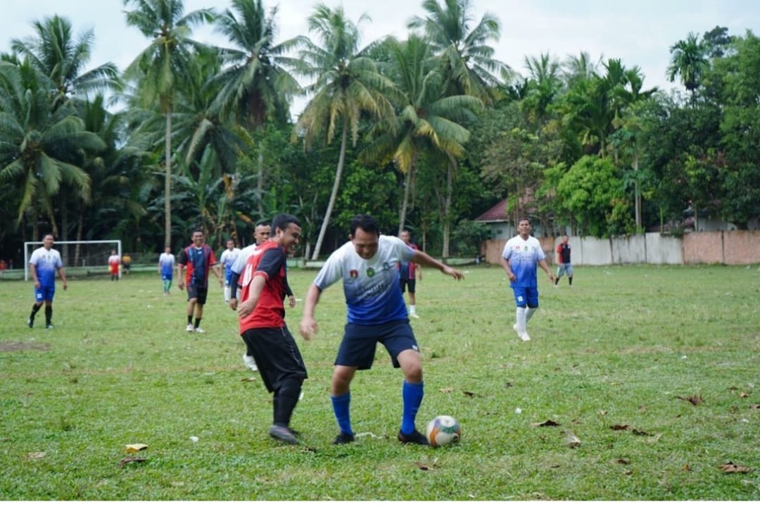 Pertandingan persahabatan dilaksanakan di lapangan sepak bola Penandingan Muara Enim.