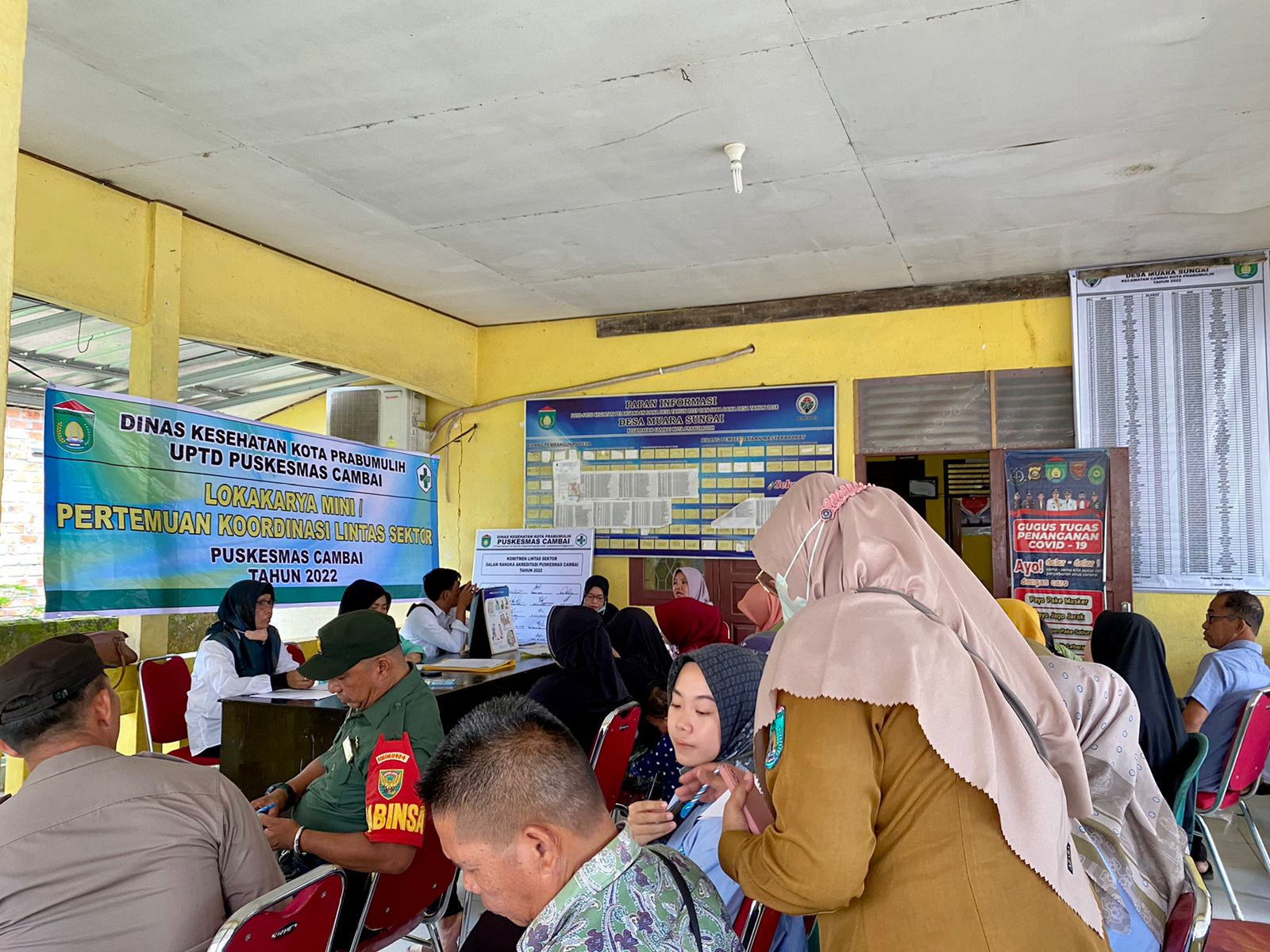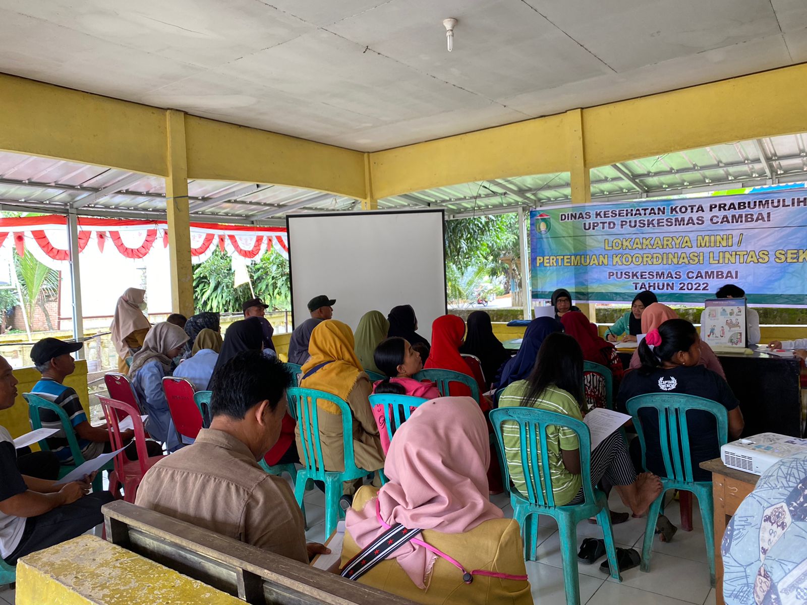 Prabumulih, 03 Agustus 2022 kegiatan lokakarya mini / pertemuan Koordinasi lintas sektor oleh Puskesmas Cambai, yang di hadiri oleh Perangkat Desa, Kadus, Bidan Desa, Kader Lansia, Kader Balita, Babinsa, Babinkamtibmas, PKK, dan mahasiswa KKN UIN Palembang.