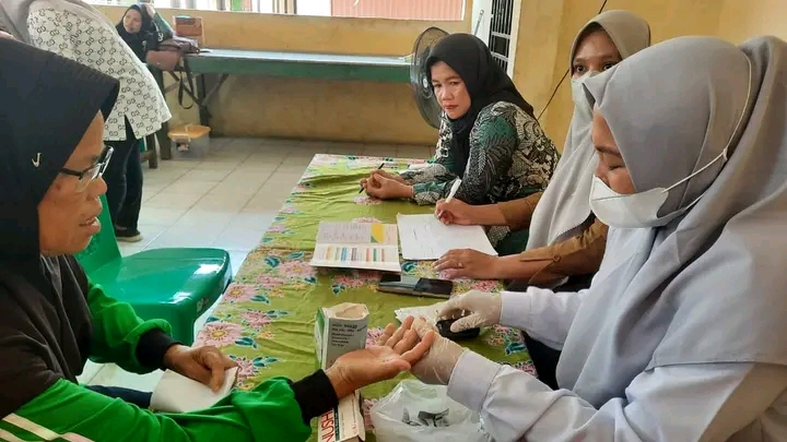 Prabumulih, kegiatan posyandu lansia di Desa Muara Sungai Kecamatan Cambai Kota Prabumulih. Dalam kegiatan ini dilaksanakan senam lansia dan pemeriksaan kesehatan lansia yang ada di Desa Muara Sungai Kecamatan Cambai Kota Prabumulih.