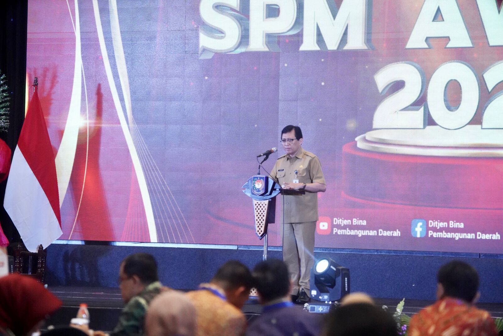 Acara SPM Awards 2023 dihadiri oleh Wakil Menteri Dalam Negeri Bapak John Wempi Wetipo, SH, MH sekaligus menyerahkan Penghargaan untuk Provinsi dan Pemerintah / Kota yang mendapatkan SPM Awards 2023 yang dilaksanakan di Hotel Bidakara Jakarta Pusa