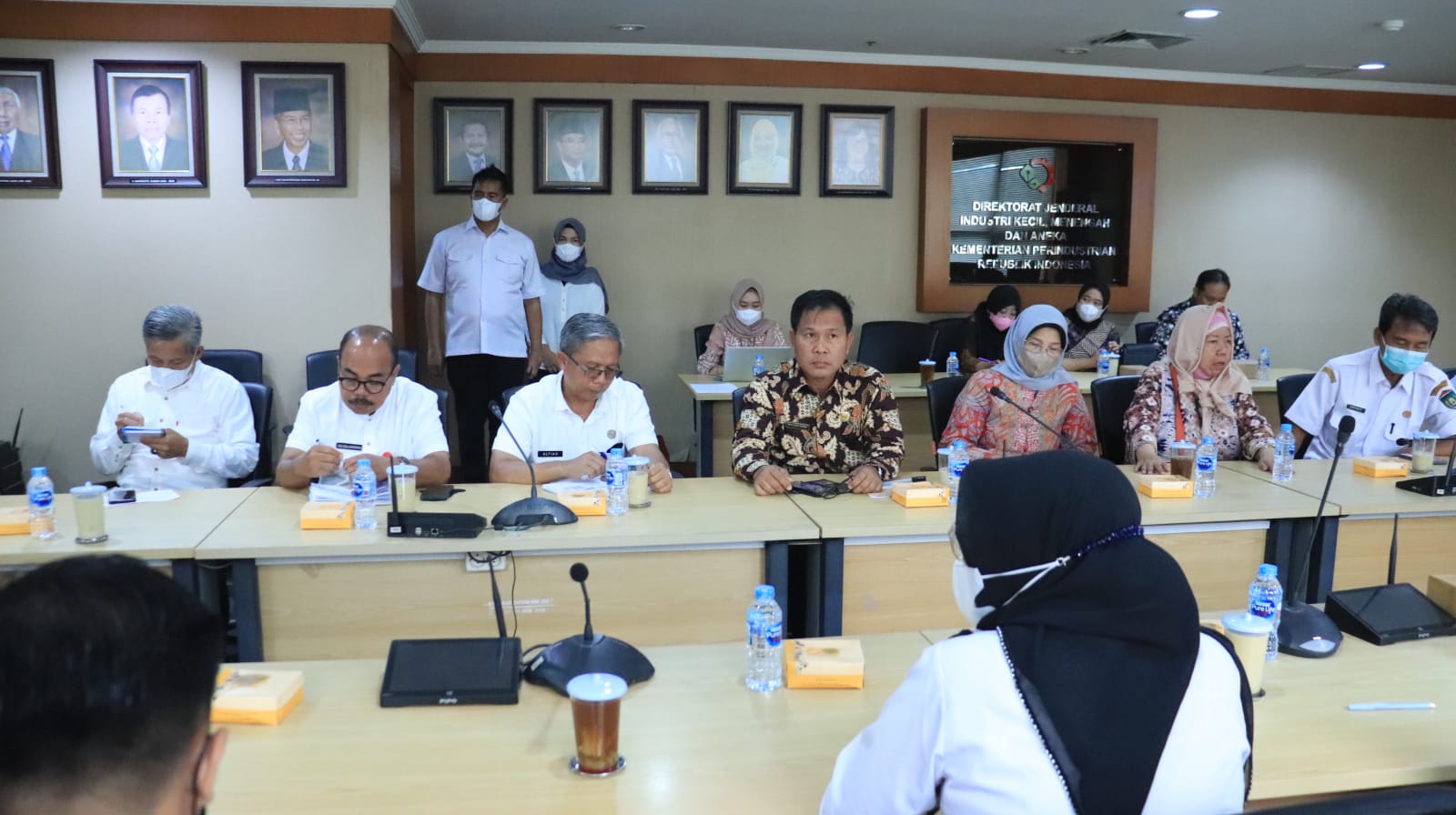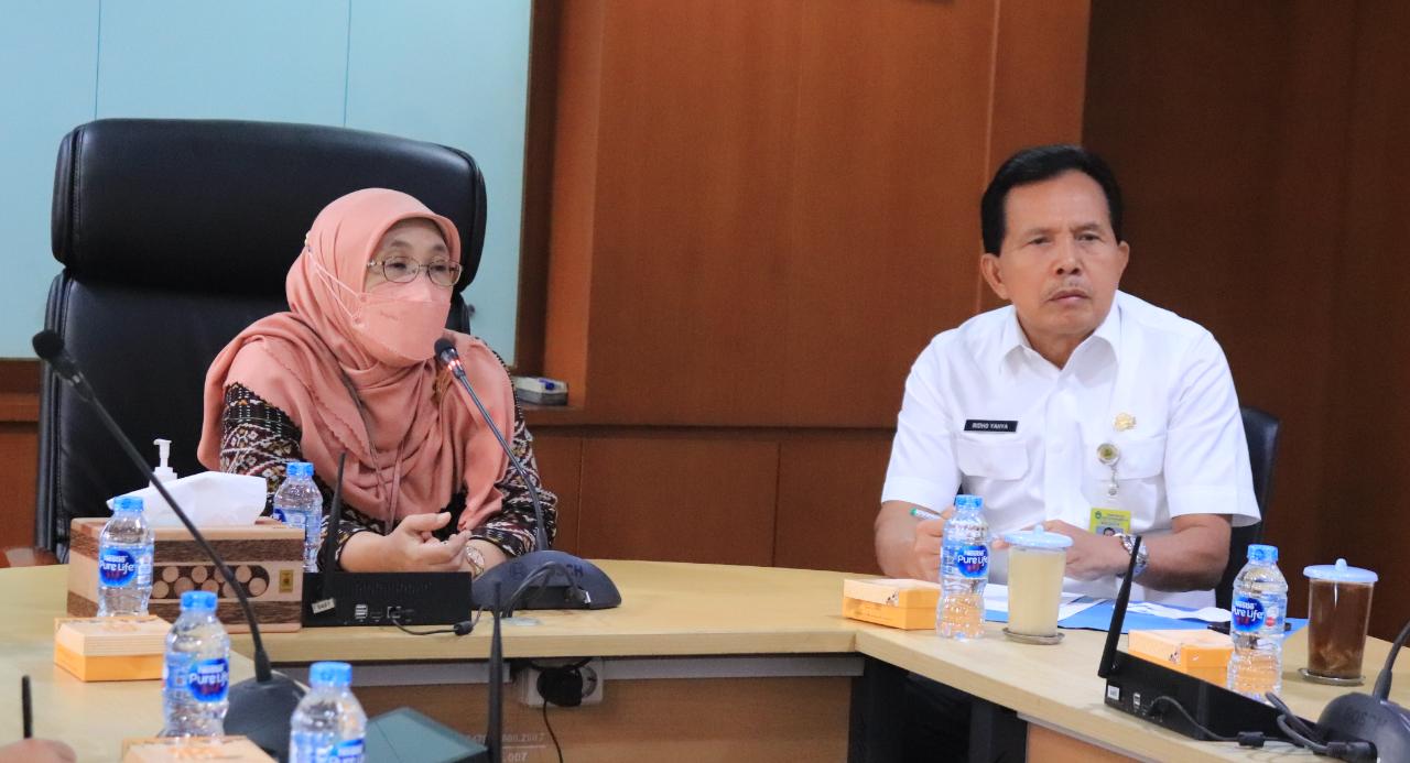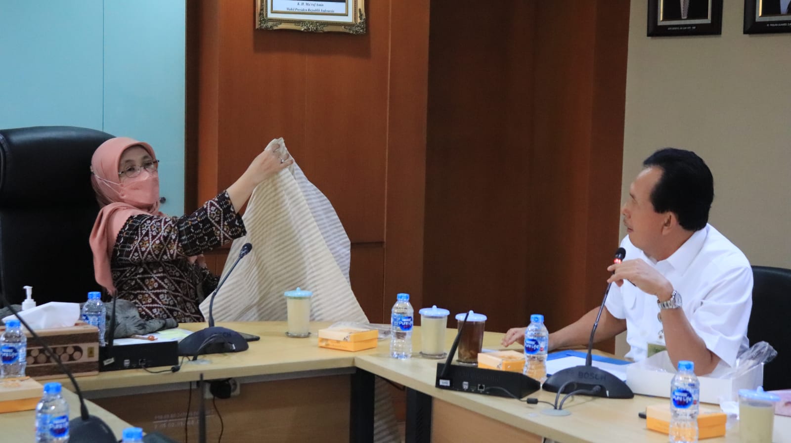 Walikota Prabumulih H.Ridho Yahya didampingi Staf Ahli Walikota Mulyadi mengikuti rapat untuk usulan bantuan peralatan pemberdayaan ekonomi masyarakat kota Prabumulih melalui serat dan kain tenun serat daun nanas.