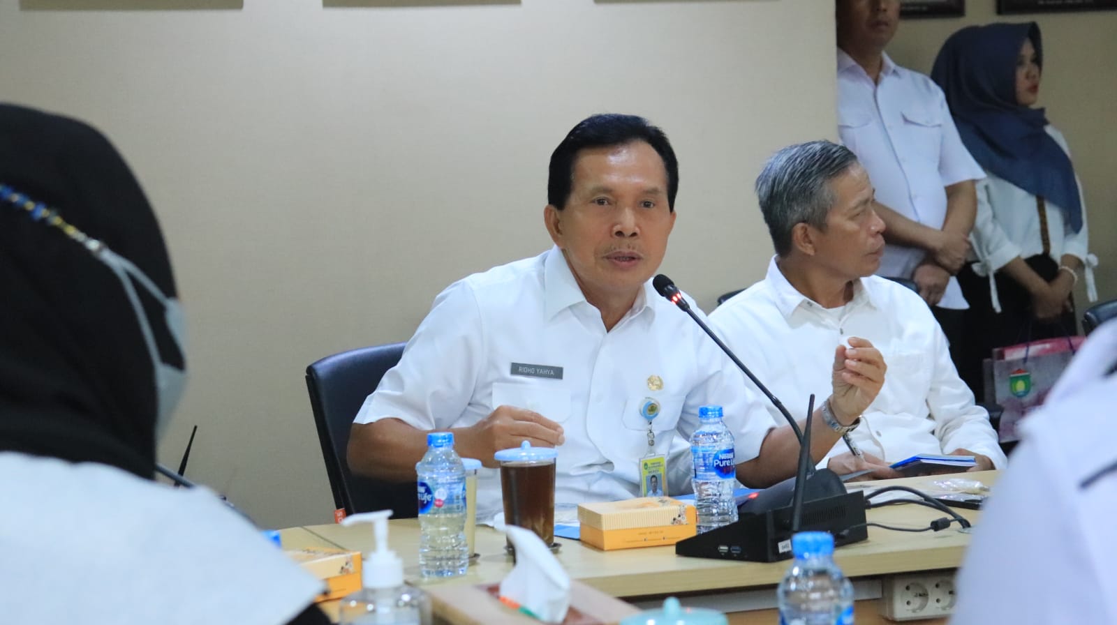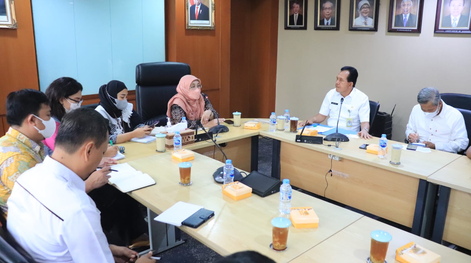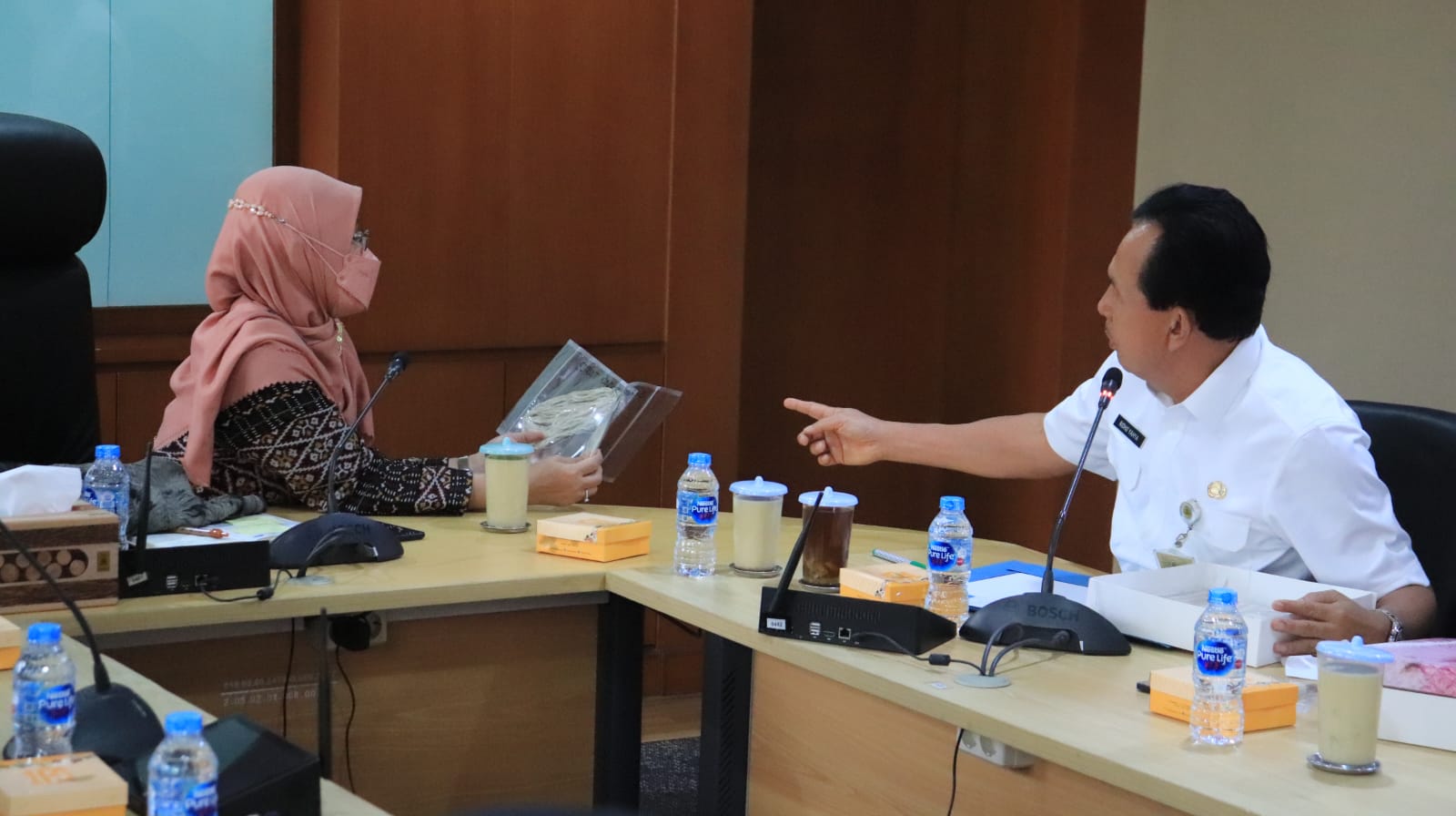 Walikota Prabumulih H.Ridho Yahya didampingi Staf Ahli Walikota Mulyadi mengikuti rapat untuk usulan bantuan peralatan pemberdayaan ekonomi masyarakat kota Prabumulih melalui serat dan kain tenun serat daun nanas.