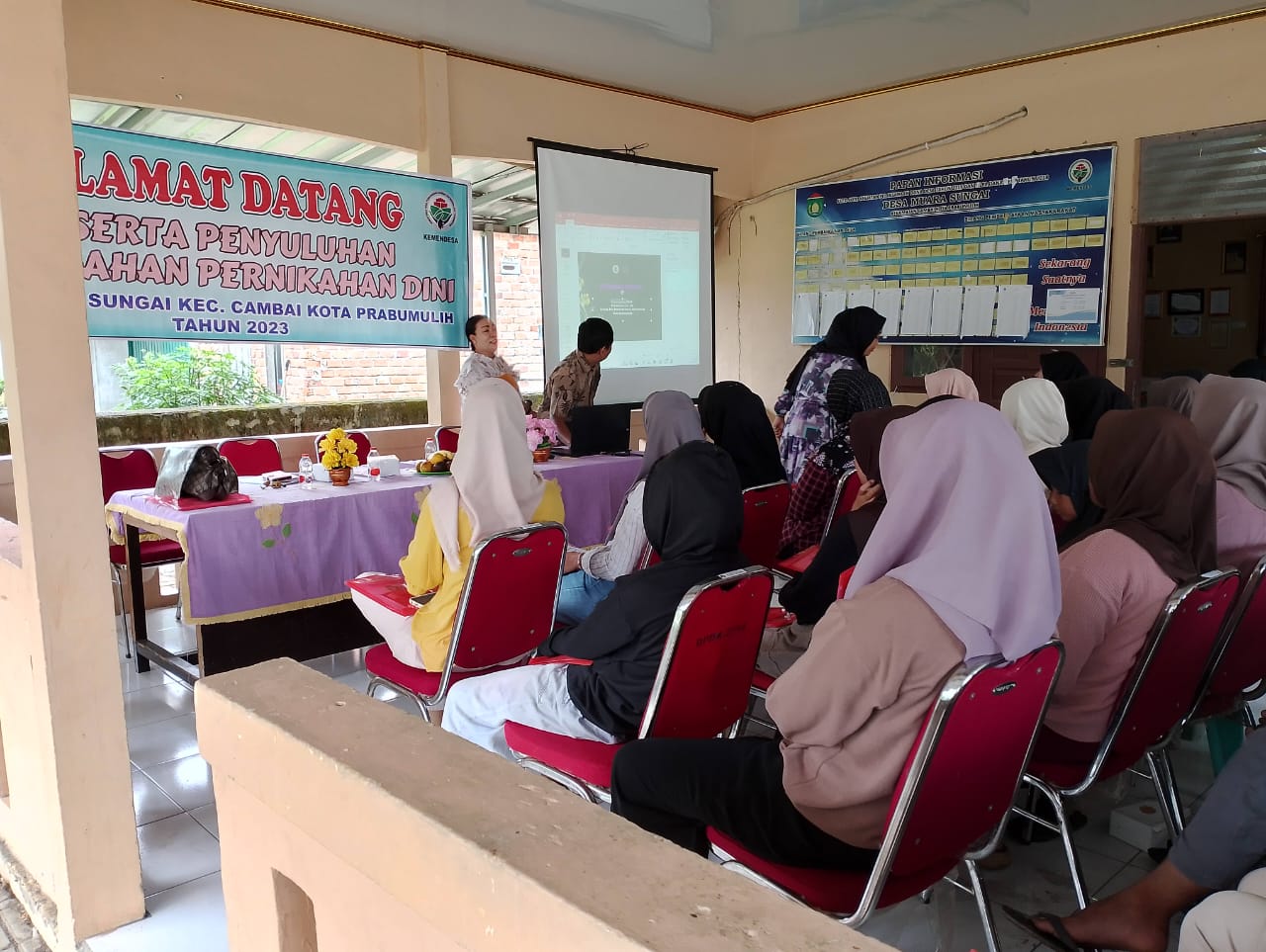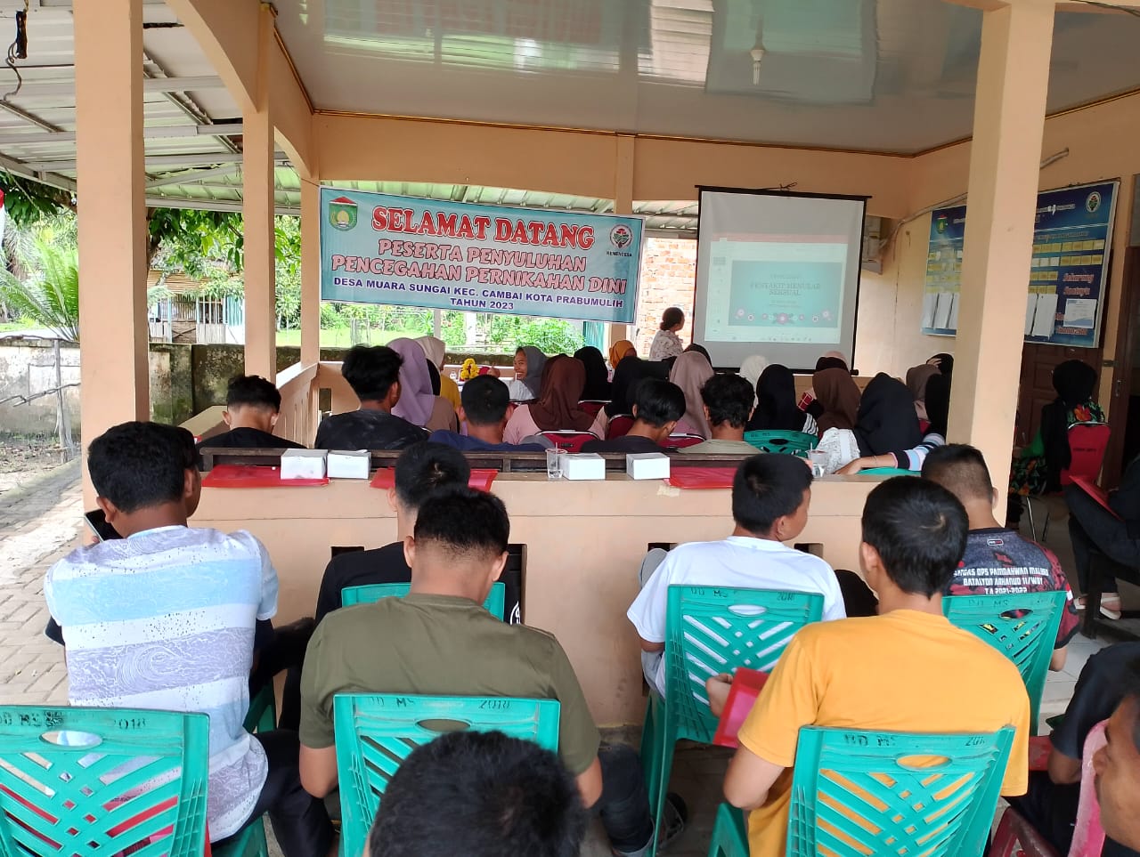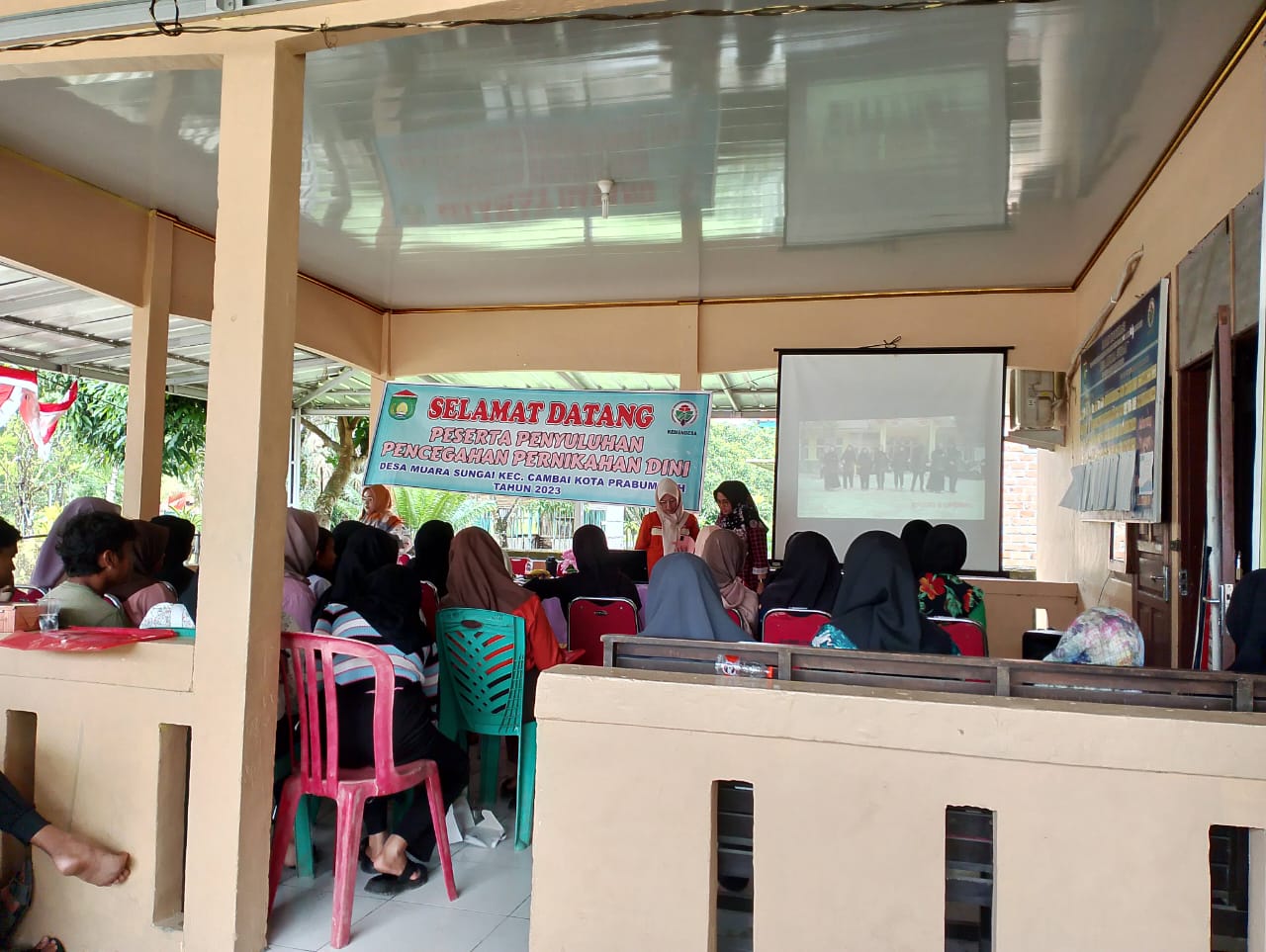 Prabumulih, 21 Desember 2023 kegiatan penyuluhan pencegahan pernikahan dini di Desa Muara Sungai Kecamatan Cambai Kota Prabumulih.