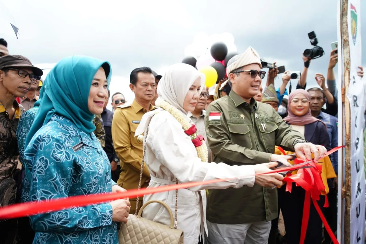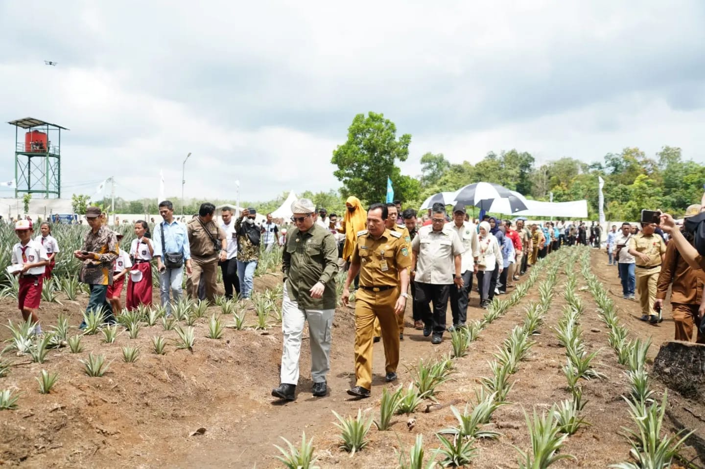 Tiba di lokasi, didampingi sang istri. Wamentan langsung meninjau lokasi agrowisata, dan meresmikan agrowisata nanas.