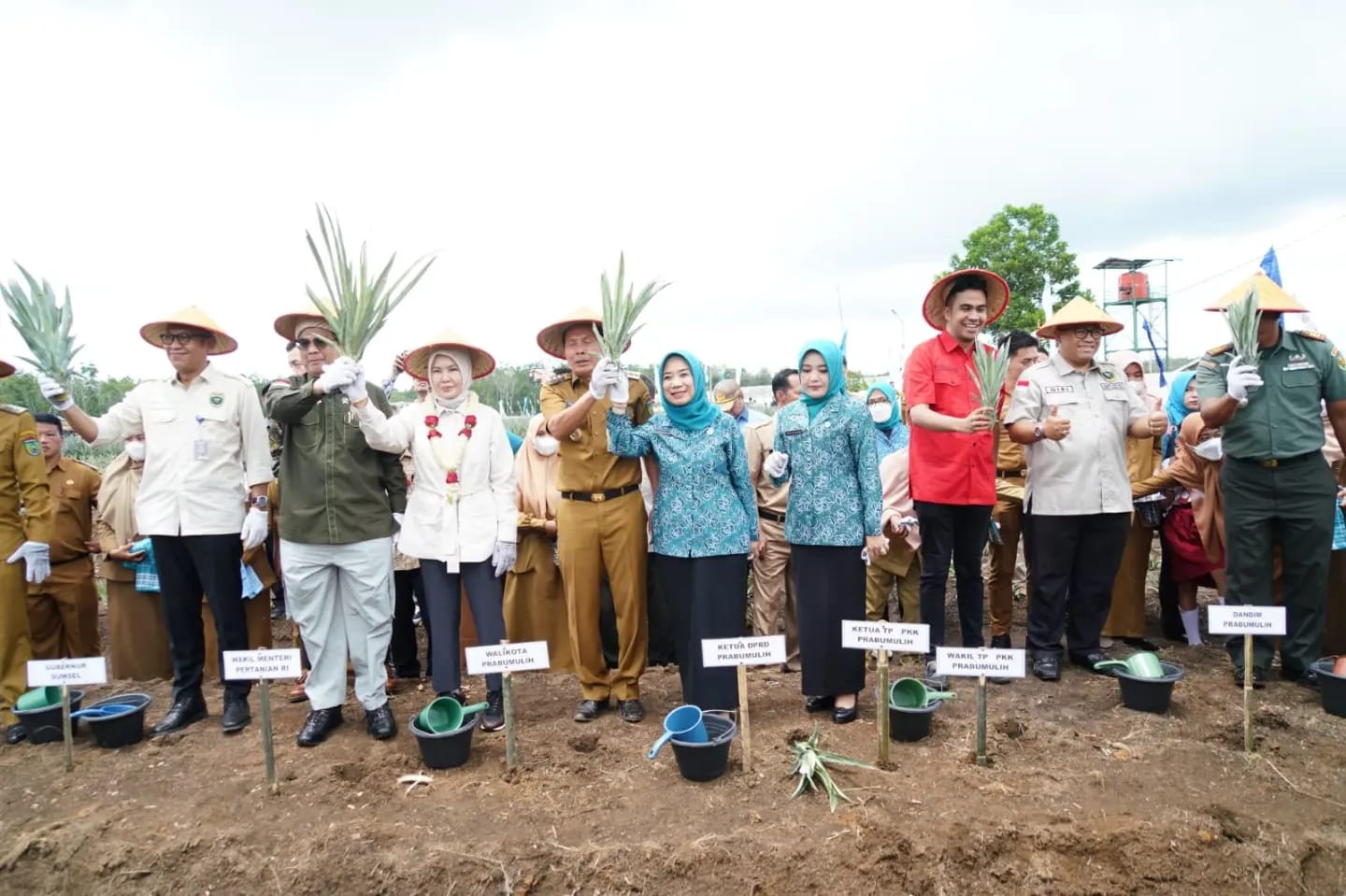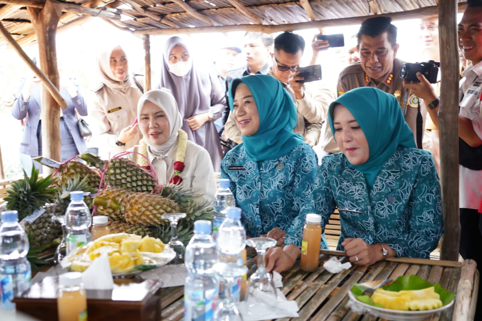 Dalam kesempatan ini, Wamentan beserta istri didampingi wakil, wawako, Ketua PKK Kota Prabumulih Ir Hj Suryanti Ngesti Rahayu Ridho, Wakil TP PKK Hj Reni Indayani Fikri SKm mencicipi buah nanas asli Kota Prabumulih.