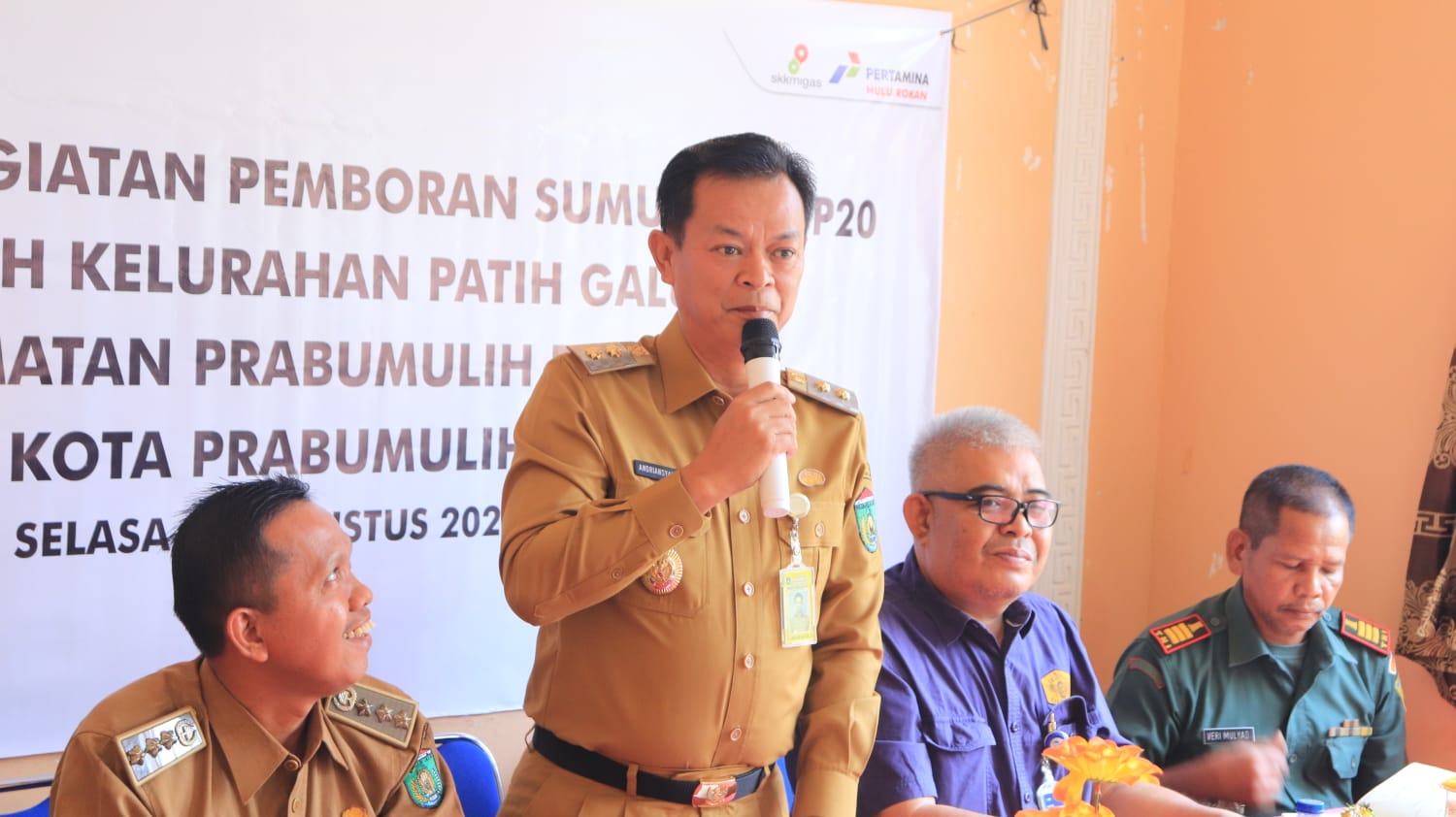 Wakil Walikota Prabumulih H. Andriansyah Fikri, SH menghadiri sekaligus membuka Sosialisasi Rencana Kegiatan Pengeboran Sumur di Lokasi PMB-P20 Kelurahan Patih Galung.