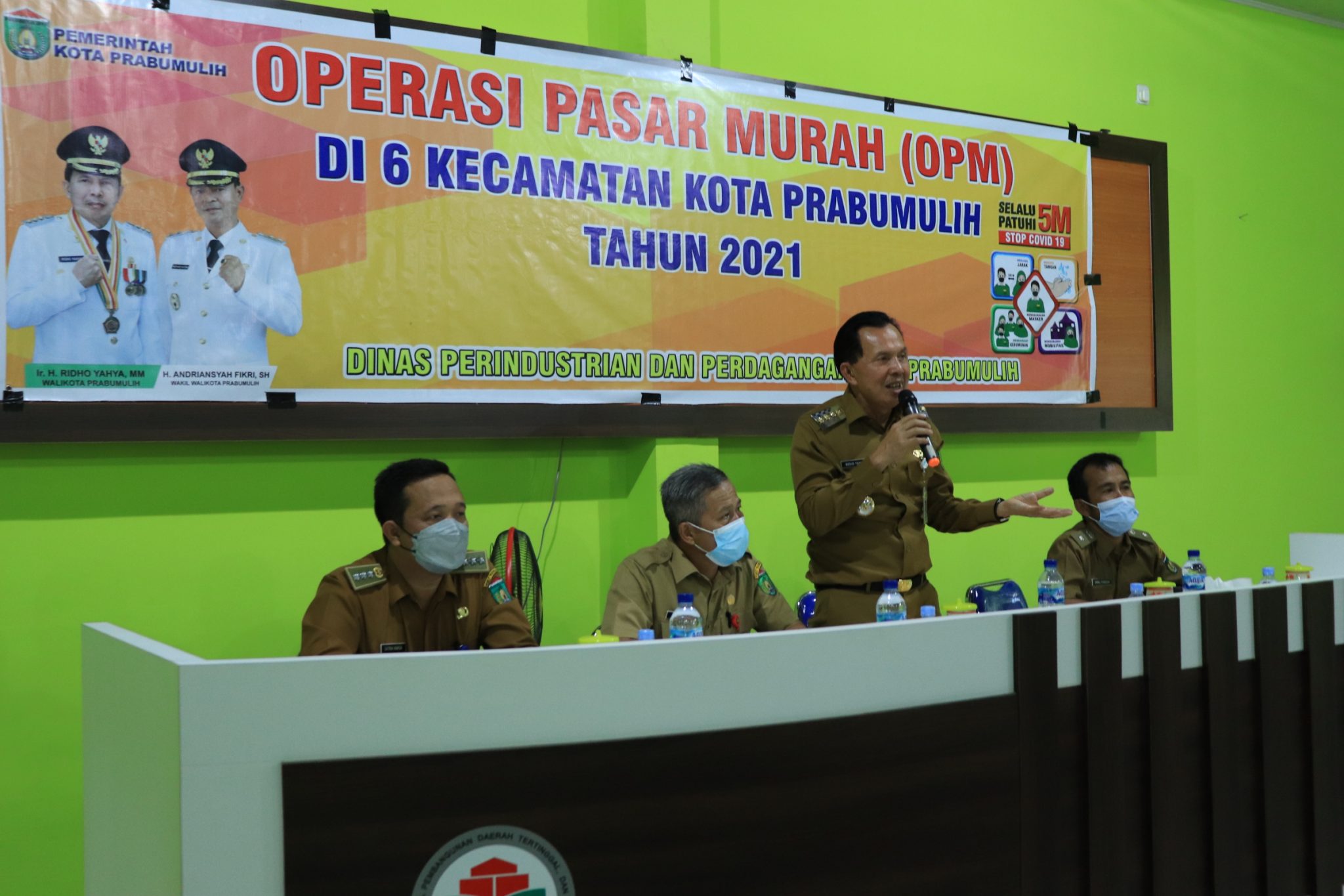 Walikota Prabumulih Ir. H. Ridho Yahya, M.M didampingi Kepala Dinas Perindustrian dan Perdagangan Muchtar Edi, S.Sos, M.Si menghadiri dan memberikan langsung Sembako Murah dalam rangka Operasi Pasar Murah (OPM) di Kota Prabumulih.